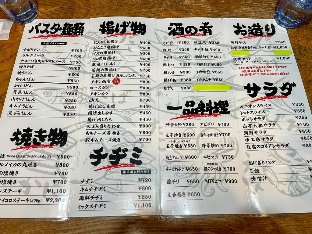 味工房さがらのメニューは非常に豊富で、113種類以上の料理が提供されています