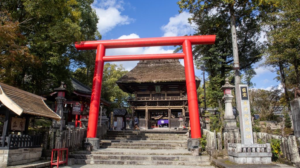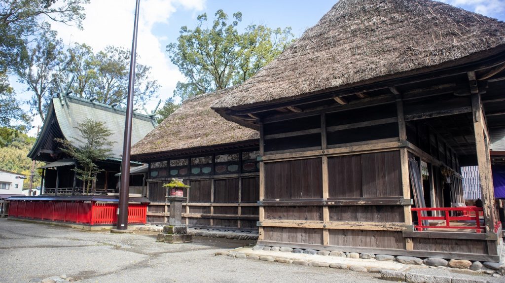 本殿、廊、幣殿、拝殿、楼門の5棟が一連の建造物として国宝に指定されており、特に茅葺き屋根の神社建築が国宝に指定されたのは全国初の事例です