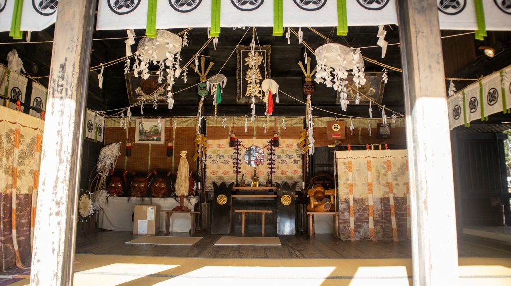 拝殿の向かって左側にある神楽を舞う、神楽殿となります