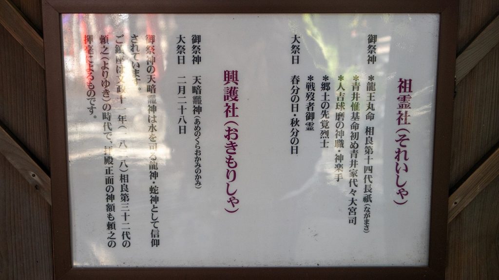 勝村大神(かつむらのおおかみ)と勝頼大神(かつよりのおおかみ)の二柱も配祀されています