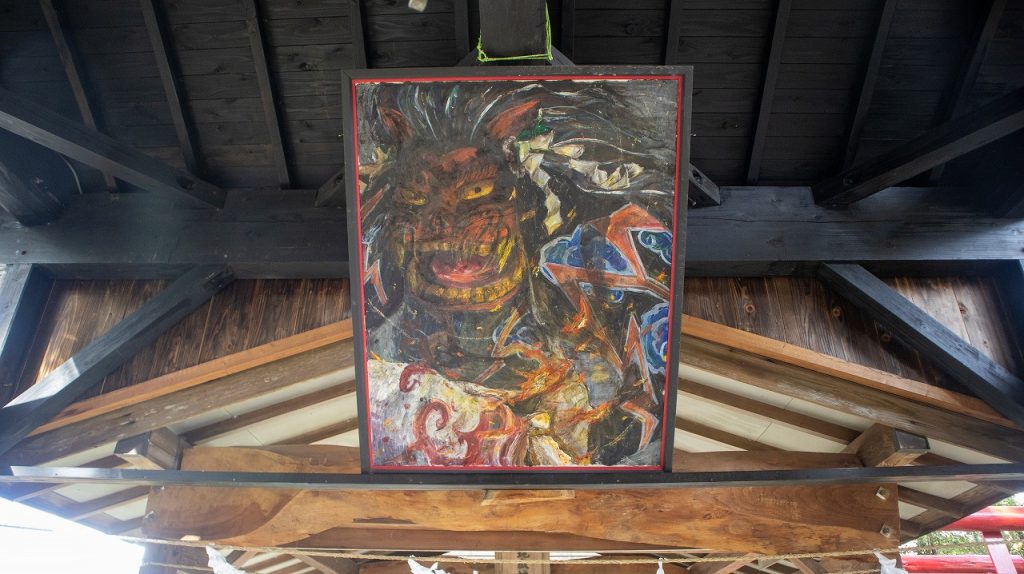 拝殿の前では伝統的な獅子舞がいて頭を噛んでもらいました