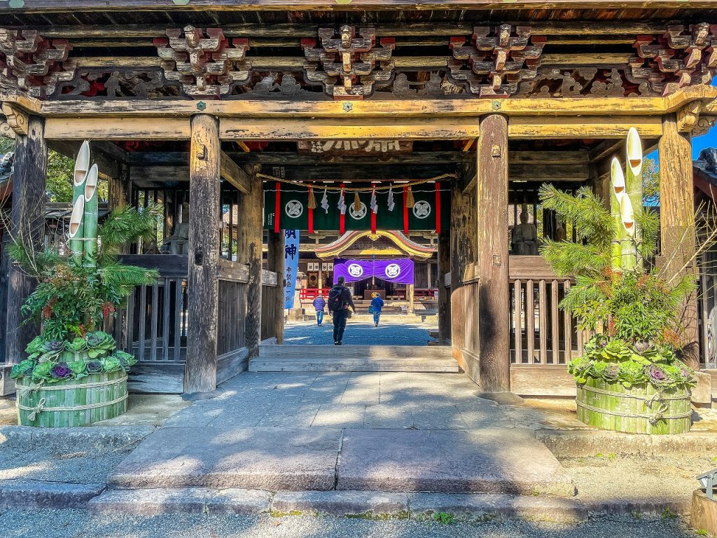 楼門前に立派な門松が飾られています
