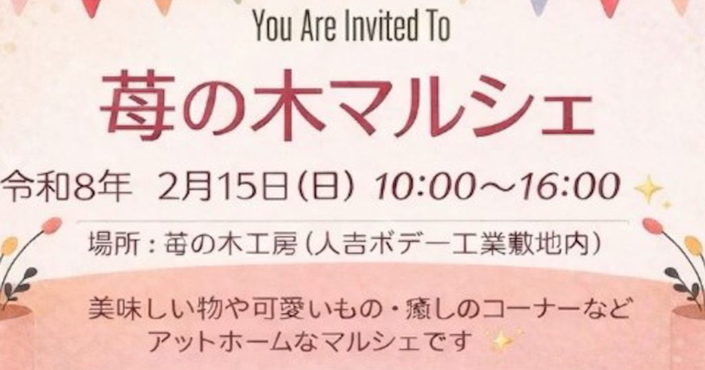 【日時】2026年2月15日(日)10:00〜16:00 美味しいものや可愛い雑貨、体験や癒しまで、いろんな楽しみが詰まった一日🍓アクセサリーやアロマ、リンパの癒し、マヤ磨、... -