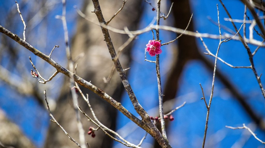 まだ咲いていない梅園で、咲いてる花を見つけるのが楽しかった♪