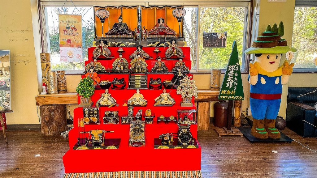 球磨村のマスコット、球磨太郎(くまんたろう)とひな人形のコラボです😊