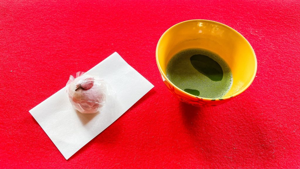 「呈茶(ていちゃ)」は、お茶をいれて差し上げるという意味で、抹茶をたてて持ってきてくださいます🍵