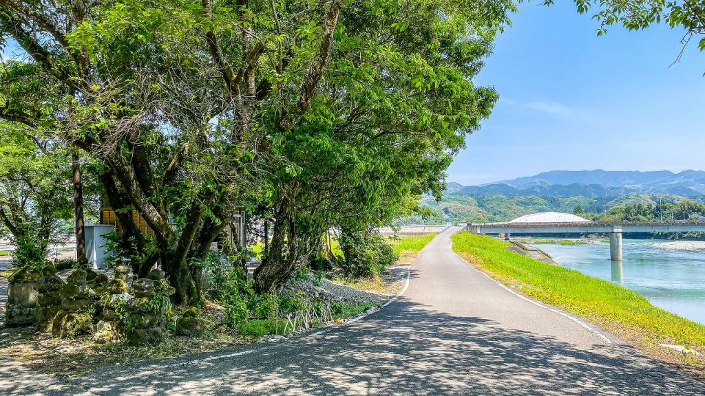山江村の万江川沿いの谷をさかのぼったところにあり、自然豊かで静かな場所にあります