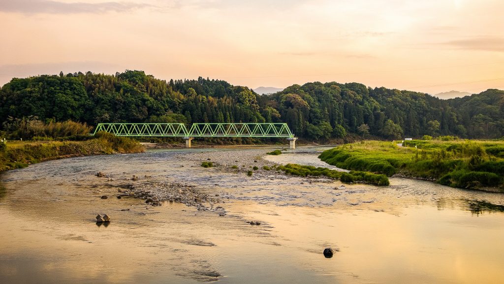 球磨川第四橋梁周辺が、夕日で赤く染まり美しい光景でした(^^♪
