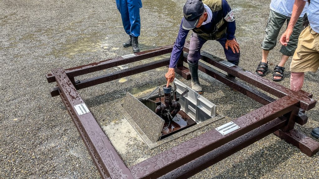 この行事は、楼門・拝殿・神殿を火災から守るために整備された消防設備(放水銃など)の導入を一般公開し、参拝者や地域住民にその構造・機能を説明・体験してもらう目的で行われました