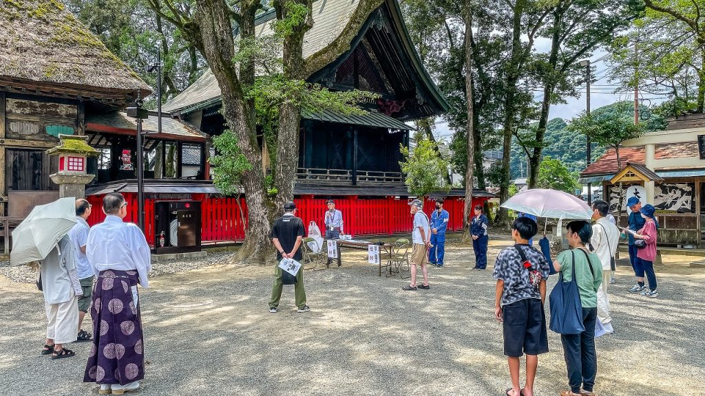 青井阿蘇神社において、被災からの復旧と防災強化の一環として 総合設備の見学会 と 放水銃などを用いた設備放水実演の完成披露 が実施されました
