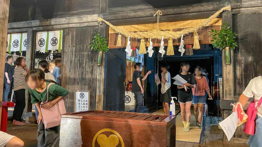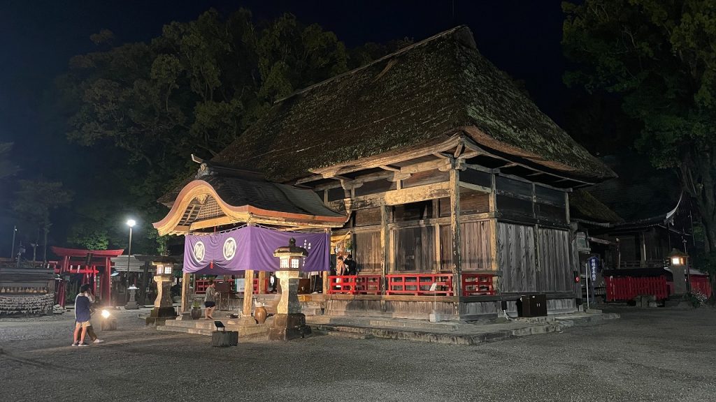 拝殿に灯る明かりの中、鈴や扇を手に舞う子どもたちの姿は、凛としていて、どこか神聖な気配を感じさせるものでした。所作の一つ一つに真剣さが宿り、足捌きや舞の流れには、伝統を受け継ごうという意志が明確に表れていました