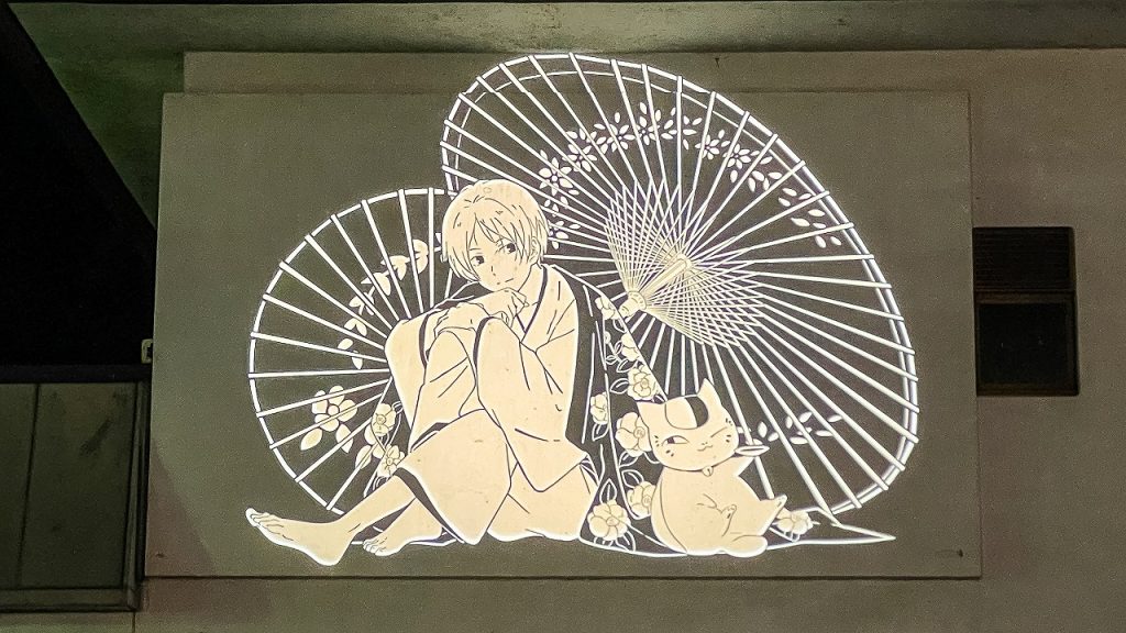 通りがかる人たちも足を止め、影絵を眺めたり写真を撮ったりしていて、静かな夜を優しく包む “妖(あやかし)” の世界を肌で感じる時間でした
