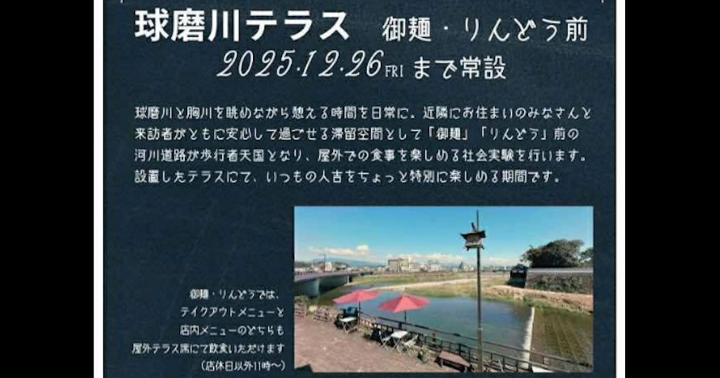 開催日 令和7年12月26日まで 店休日以外11:00~15:00 球磨川と胸川を眺めながら憩える時間を日常に近隣にお住まいのみなさんと来訪者がともに安心して過ごせる滞留空間… -