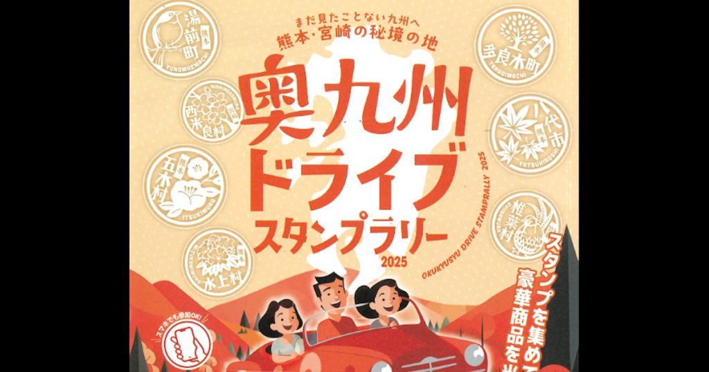 開催期間 令和7年10月18日~12月28日 今年も奥九州ドライブスタンプラリー開催中です。九州中央山地に位置する7市町村のドライブスポットを巡ってスタンプをゲットする… -