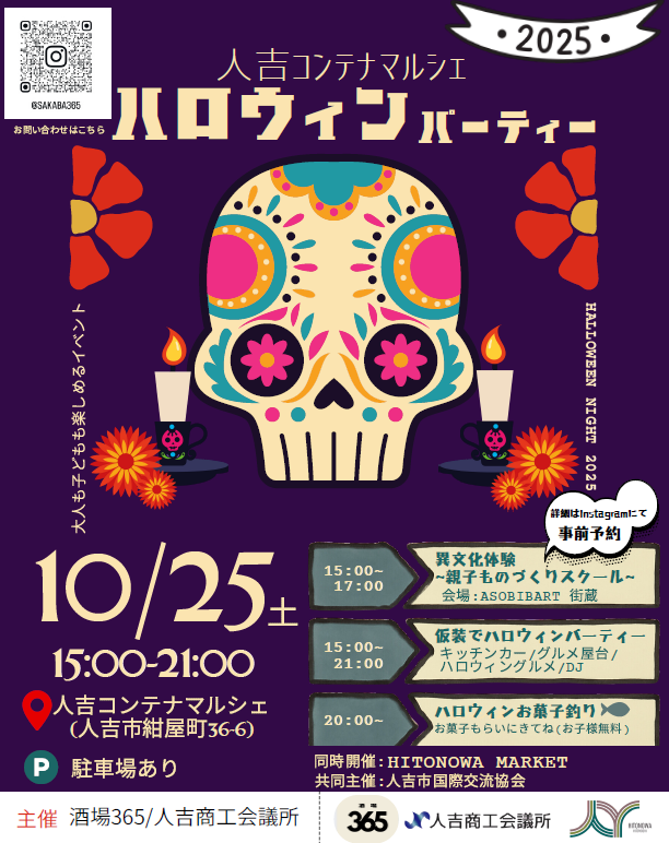 ハロウィンは人吉コンテナマルシェで仮装して音楽を聴きながらご飯を食べたりお酒を飲んだり♪