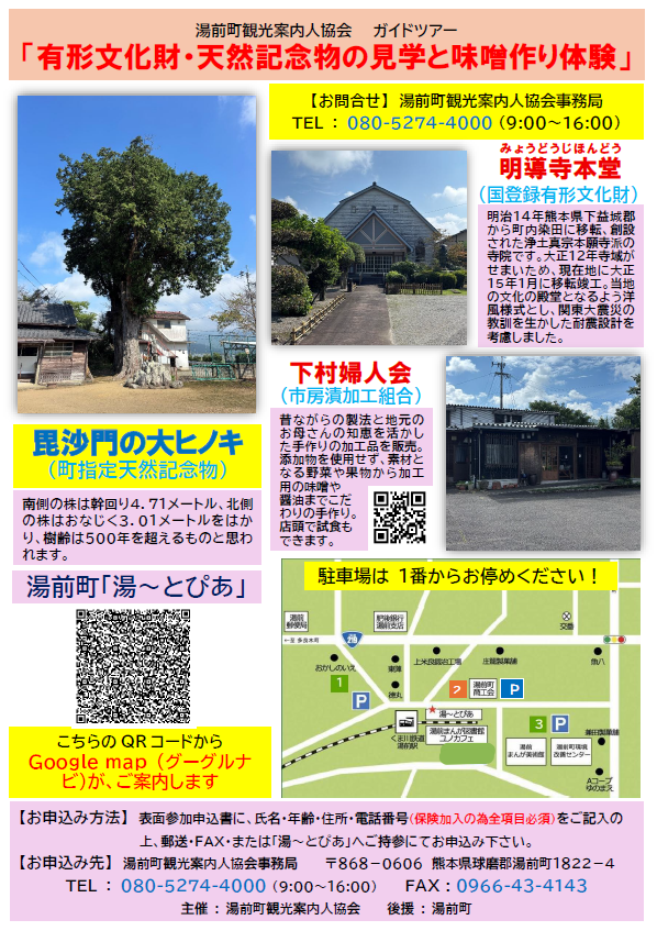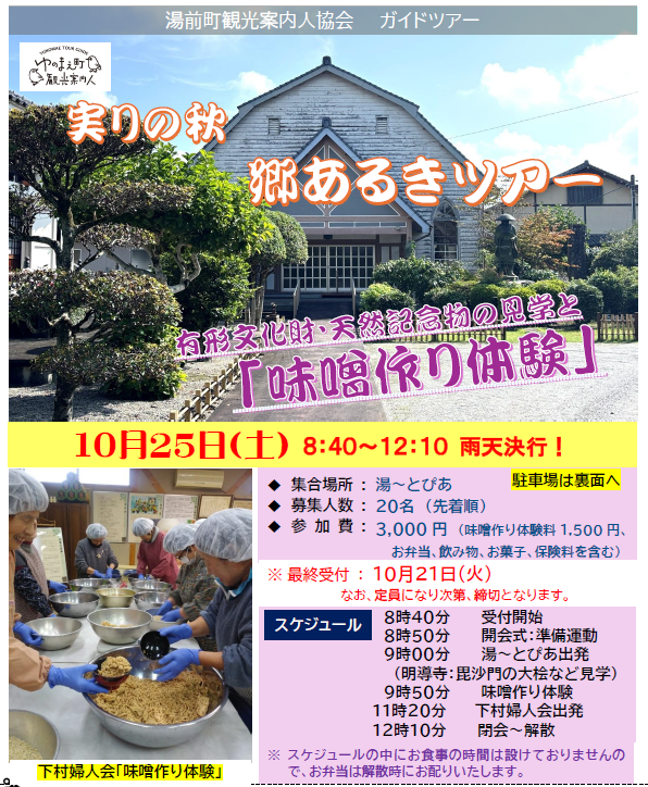 有形文化財、天然記念物の見学と『味噌作り体験』を行います