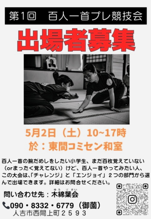 ・百人一首のプレ競技会(出場者募集)