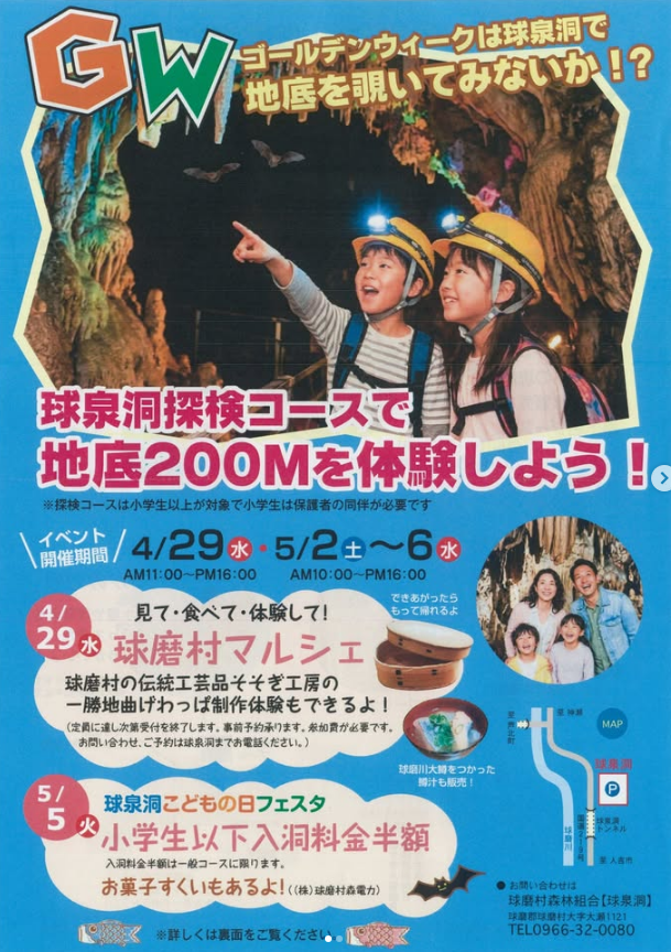洞窟探検の非日常感と、にぎやかなGWの雰囲気をあわせて味わえそうです。