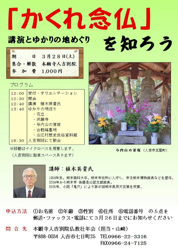 本願寺人吉別院(集合・解散)+ かくれ念仏ゆかりの地(マイクロバス移動)