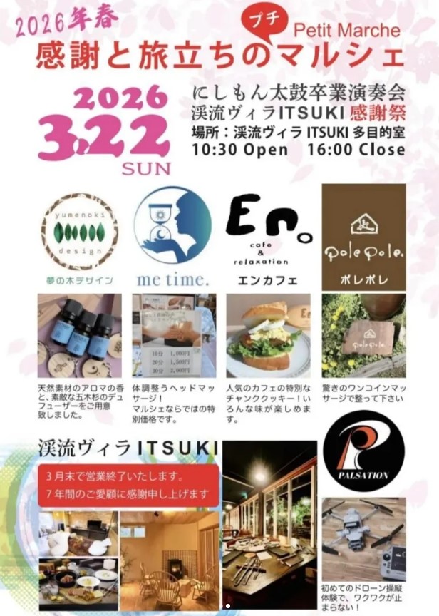 ・「渓流ヴィラITSUKI 感謝祭」(2026年3月末で現運営形態を一区切り)
