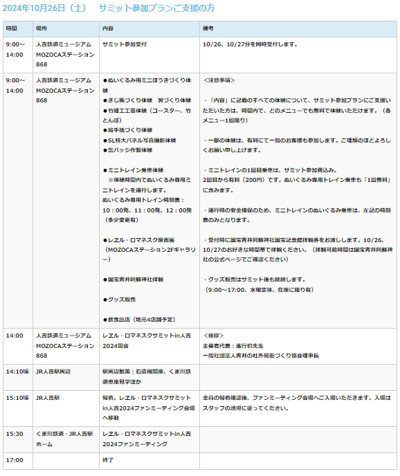 レヱル・ロマネスクサミットin人吉 2024 10/28 終了しました スポンサーリンク 開催日 令和6年10月26日~27日 終了しました 『レヱル・ロマネスク』と「人吉球磨」を応援してくださる皆様に、心より感謝申し上げ、今年も皆様にお目にかかる日を、人吉で楽しみにお待ちしております 終了しました URLをコピーしました! URLをコピーしました! 関連記事 第30回 あさぎりマルシェ 遠山桜まつり 日本の急須展 4月度 お家で譲渡会|あさぎり会場 第1回 あさぎりリュウキンカ祭 Asagiri Night Bar さがらdeマルシェ 光正寺 花祭り スポンサーリンク