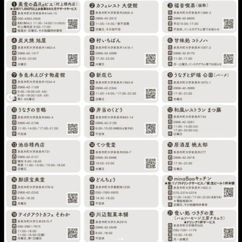 | 多良木町内の協賛店21軒 |