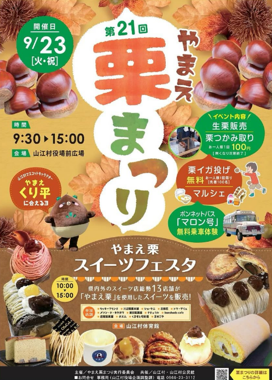 やまえ栗の魅力をもっと知ってもらうため、「第21回やまえ栗まつり~やまえ栗スイーツフェスタ~」を開催することが決定しました!