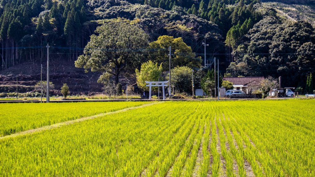 中神白木神社は田園風景と背後の山々に囲まれており、自然との調和が素晴らしい神社です🌄