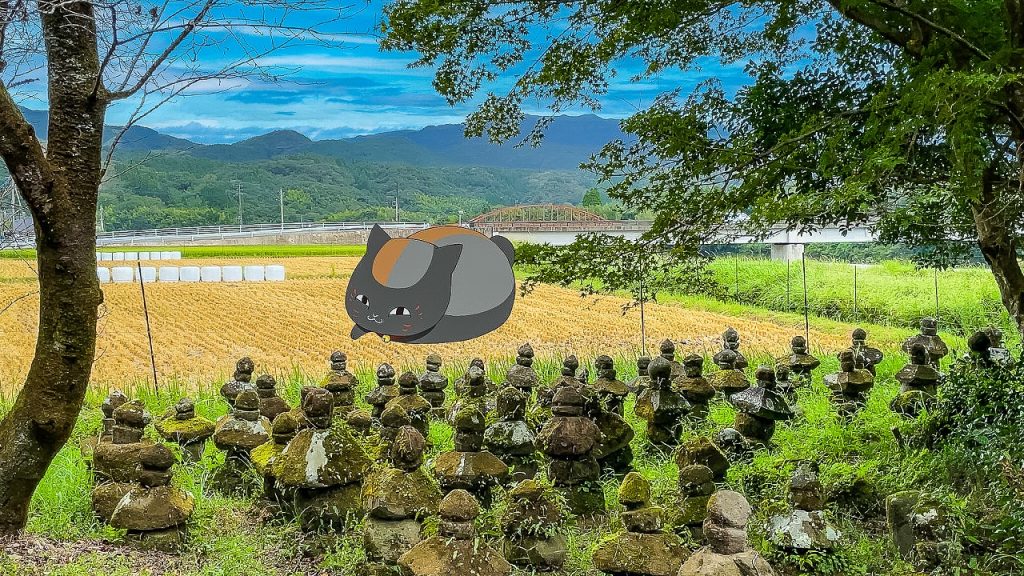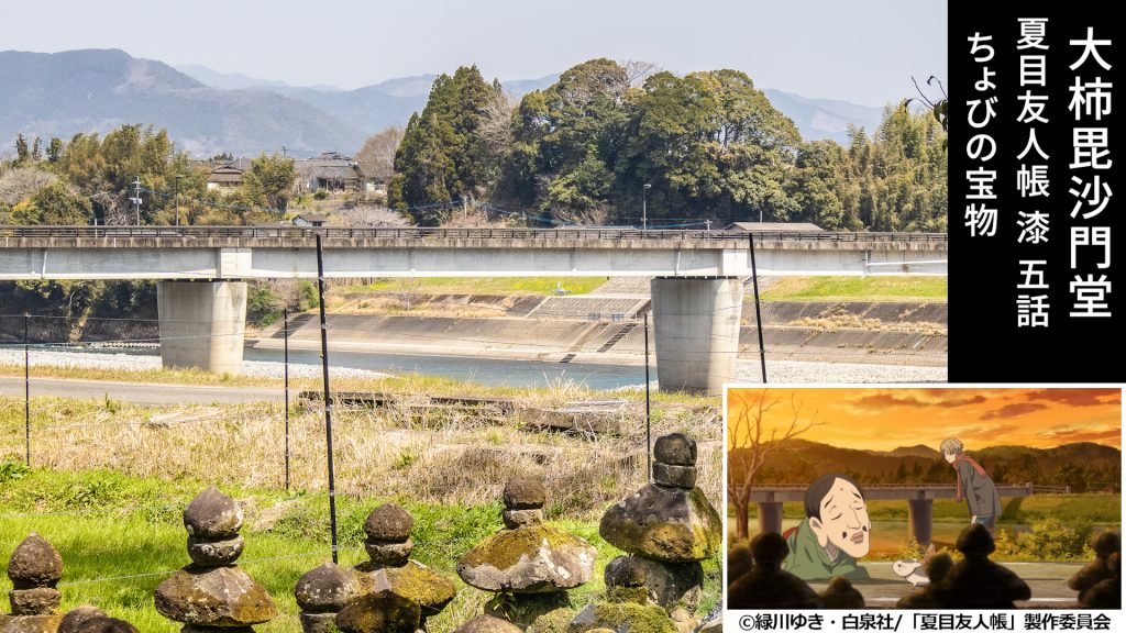 【続 夏目友人帳】【夏目友人帳 漆】に登場する大柿毘沙門堂は人吉市中神町にある毘沙門天を祀る仏堂で、敷地内には多くの供養塔群があります