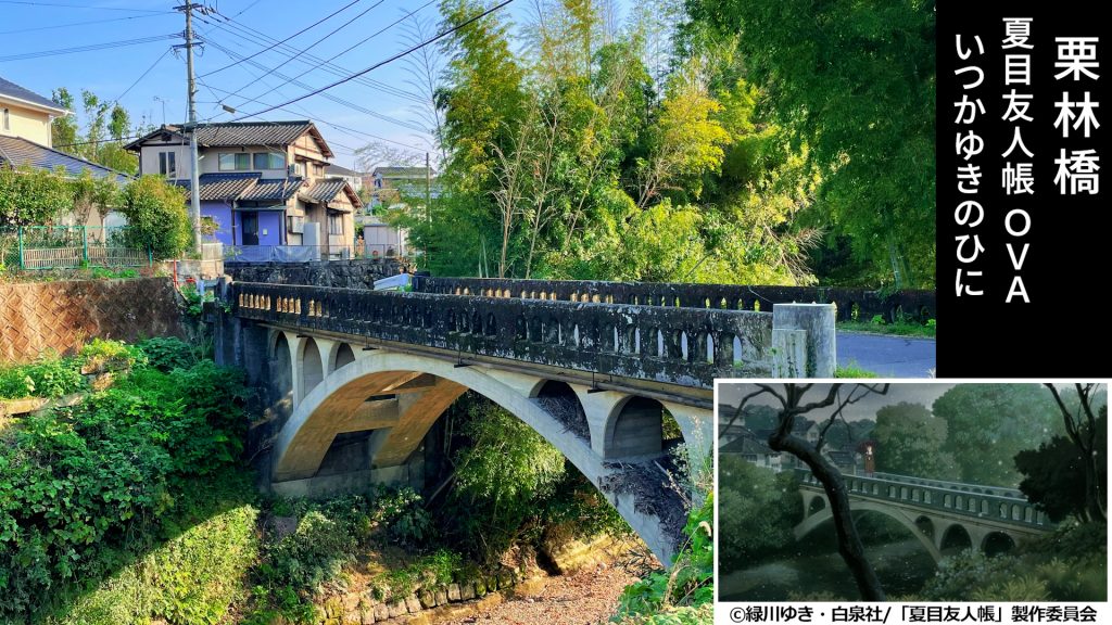 特徴的な石造りの栗林橋は馬氷川にかかる人吉市と球磨村の境界地点の橋で球磨川を望むこともでき【夏目友人帳 いつかゆきのひに】に登場します