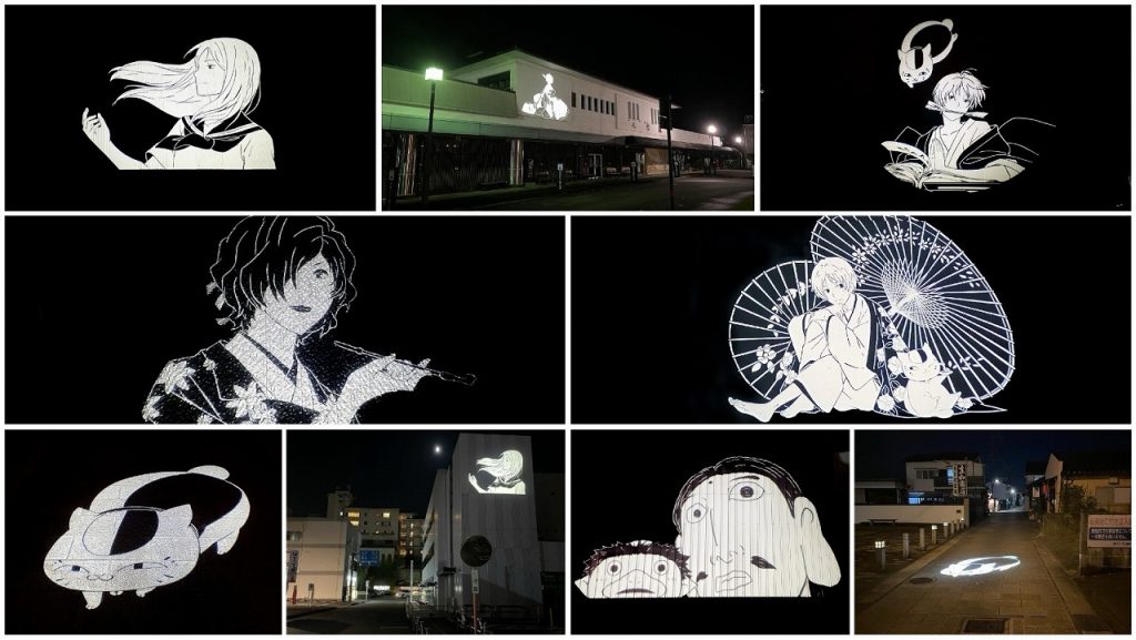 静かな夜の街に浮かぶ影絵は、ファンだけでなく、アニメに詳しくない方にも「妖(あやかし)」の住む世界を感じさせる、不思議で温かな体験を提供しています