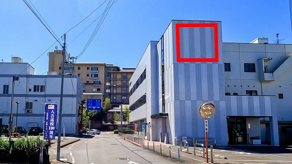 肥後銀行人吉支店のコンテナマルシェ側の壁面に点灯します