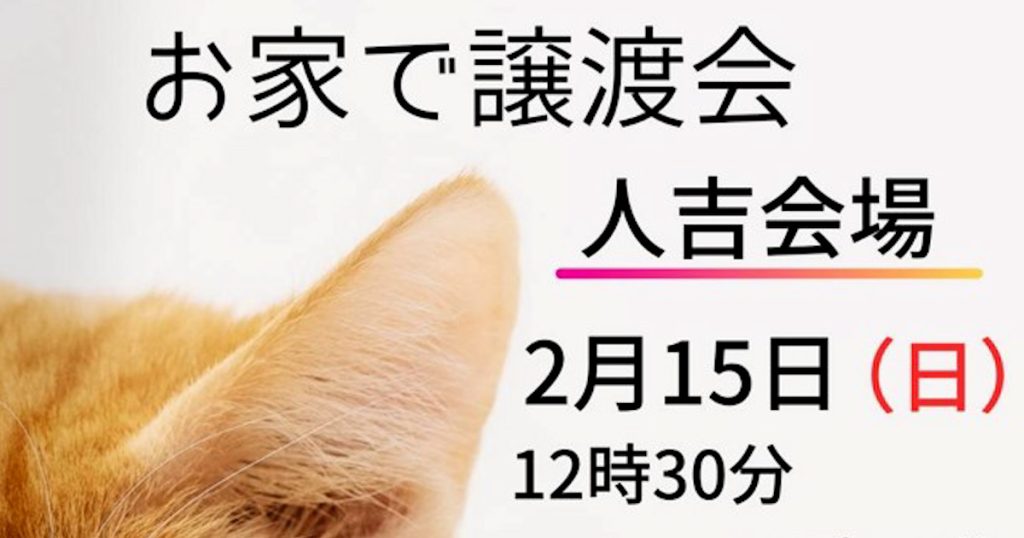 【日時】2026年2月15日(日)12時30分〜16時30分 ずっとのお家を待っている猫たちに会える「お家で譲渡会(人吉会場)」が、2/15(日)12:30〜16:30に開催されます🐾会... -