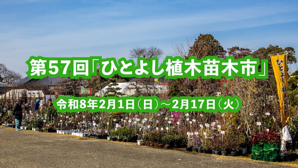 【開催期間】令和2026年2月1日(日)~2月17日(火)9:00~17:00 人吉城跡ふるさと歴史の広場で「ひとよし植木苗木市」開催!🌿 期間中、植木や刃物、乾物の出店に加え... -