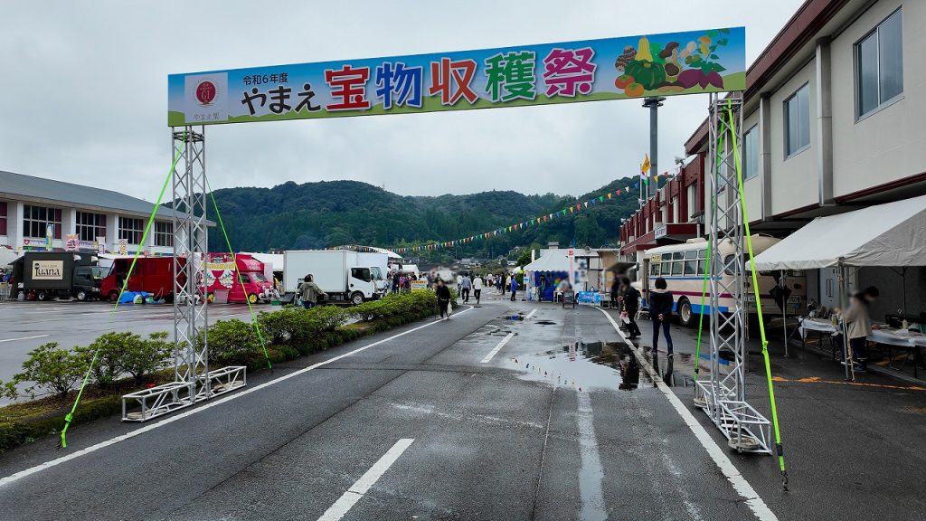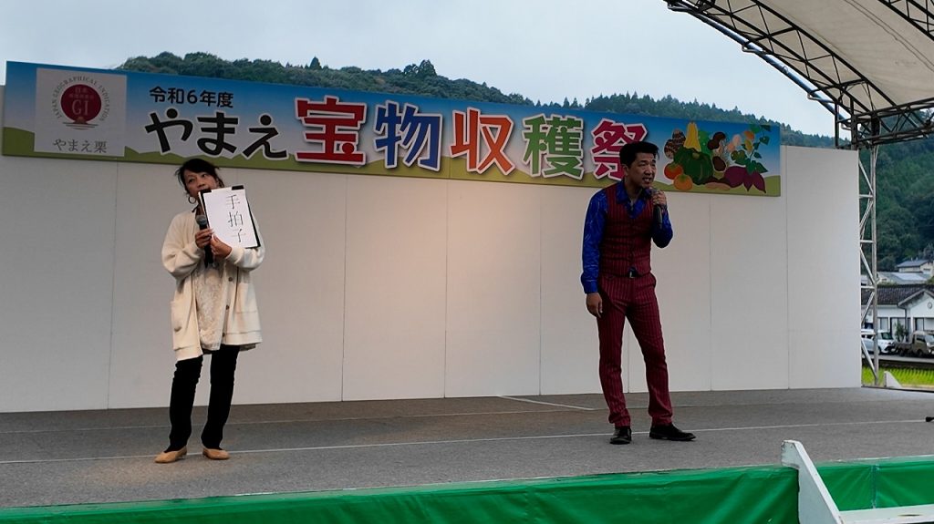 ばってん城次さんの肥後にわかコントや、キッチンカーを含む約30店舗が参加する、やまえのうまかもんフェス…