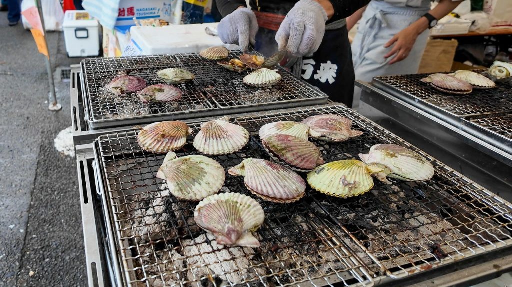 ヒオウギ貝の炭焼きです! 食べたかったイカ焼きは大人気ですでに売り切れていました(◞‸◟)
