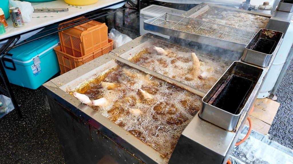 鶏のモモ揚げ♪ 揚げている音と良い匂いに誘われて行列ができていました‼ 味も最高でした😋