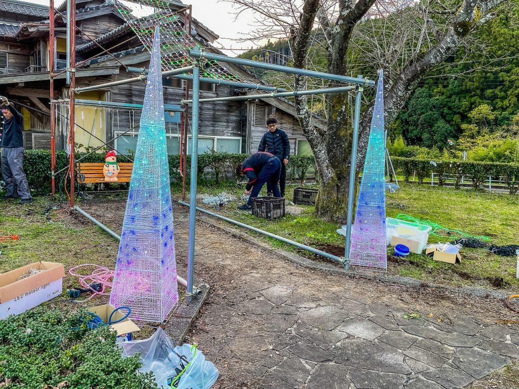 水上村商工会青年部様がイルミネーションの飾りつけを行われているという事でお伺いしてきました